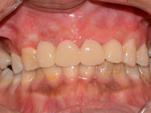 5 Months review: Dehiscence of soft tissue. Decision made to remove Ti- mesh and place implants.